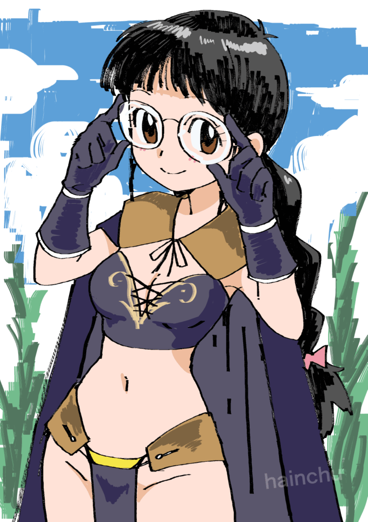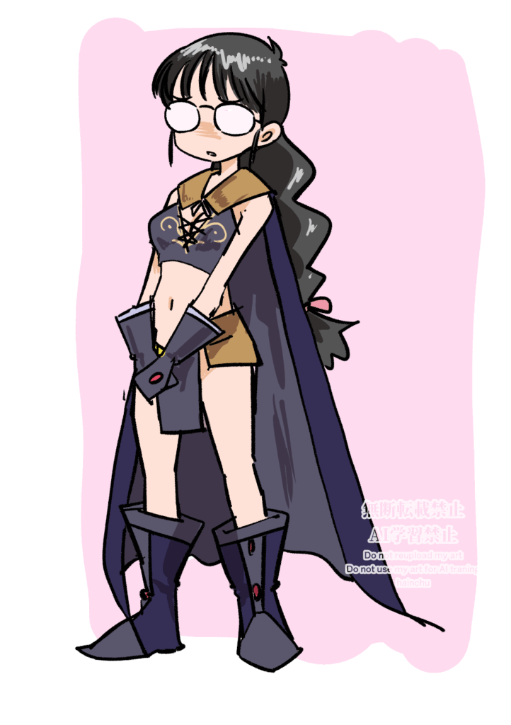 これは自分の趣味をオリジナルに出したら楽しいじゃない?って感じで作った「異世界メガネちゃん」なのですが、名前はまだ決めてません。